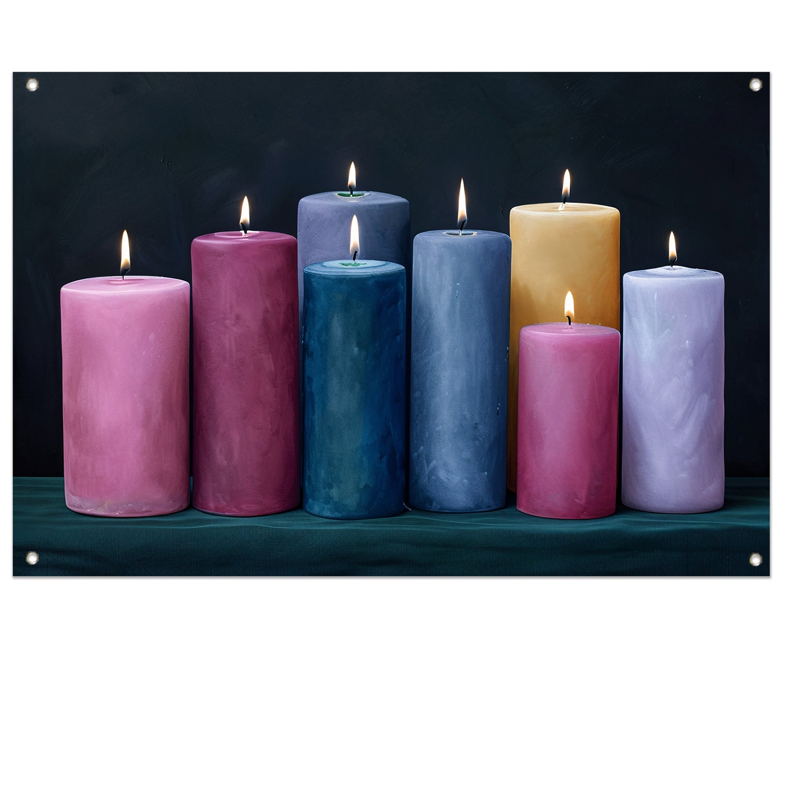 Realistische kleurrijke kaarsen voor huisdecoratie tuinposter