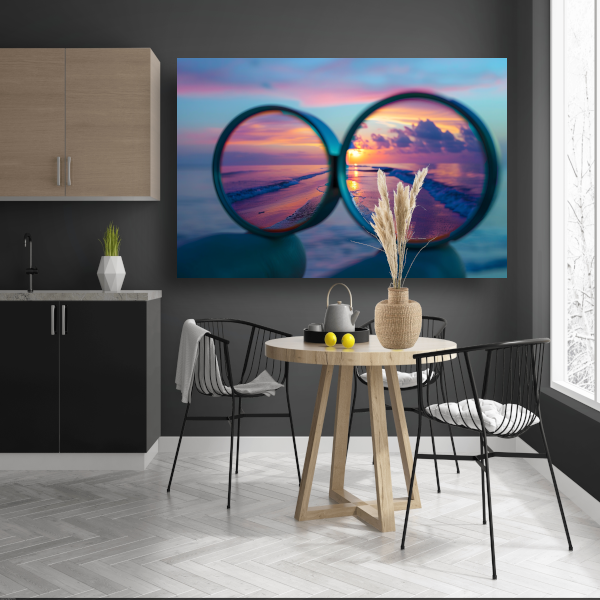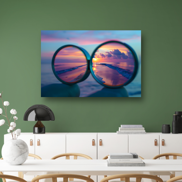 Reflectie van zonsondergang in brilglazen poster