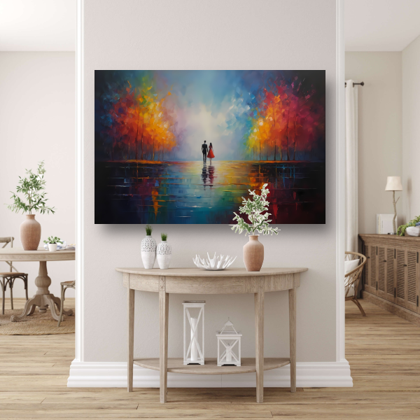 Reflecties van Liefde in Kleurrijk Bos canvas met baklijst