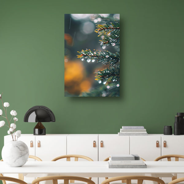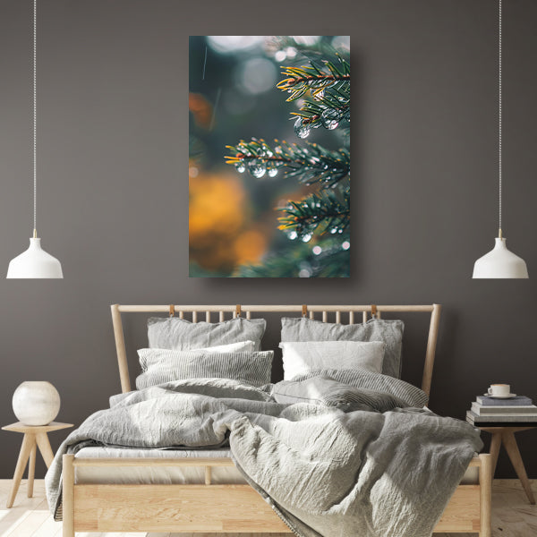 Regendruppels op Dennennaalden in Zachte Focus canvas