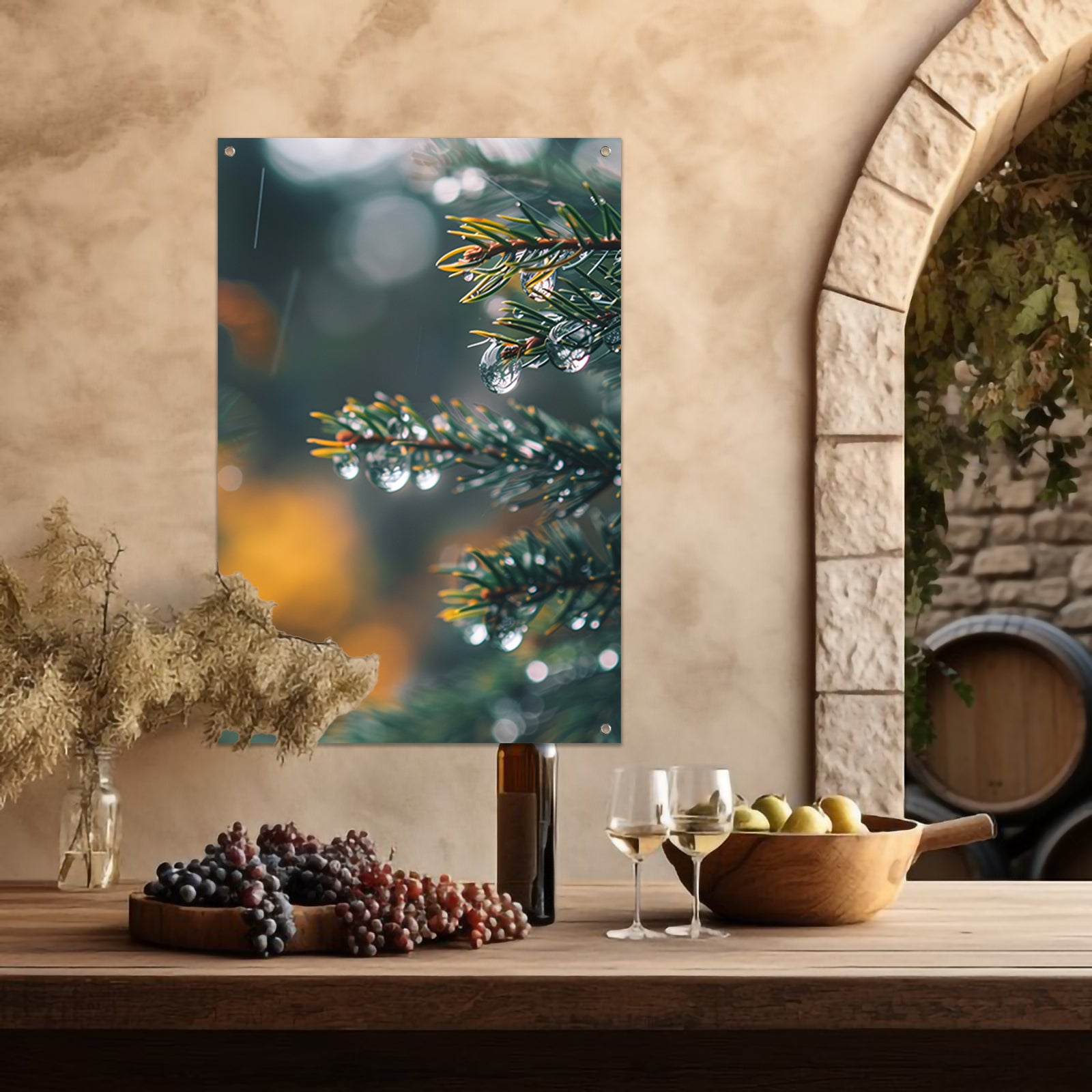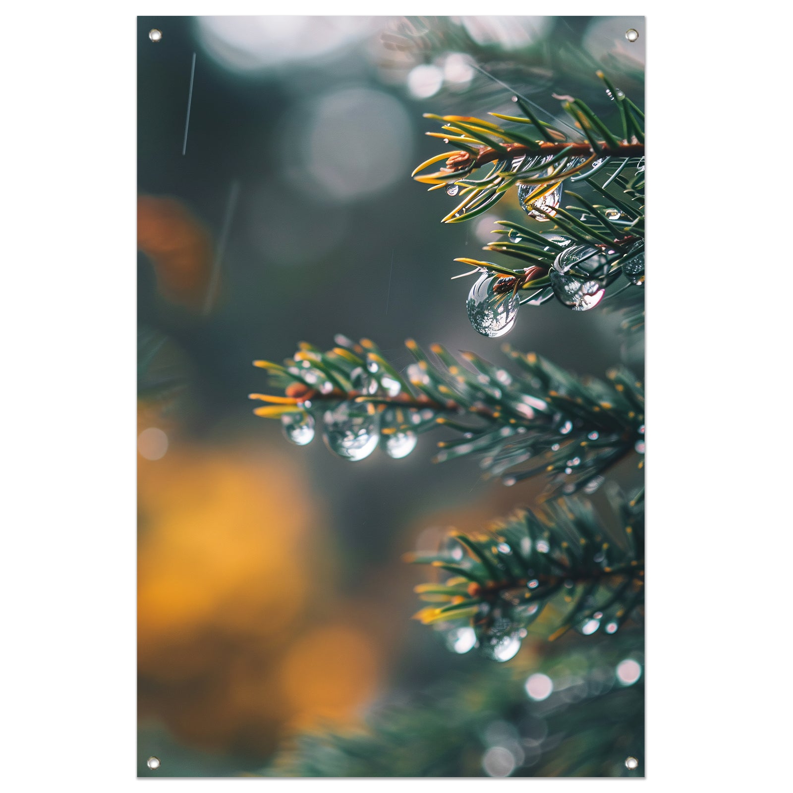Regendruppels op Dennennaalden in Zachte Focus tuinposter