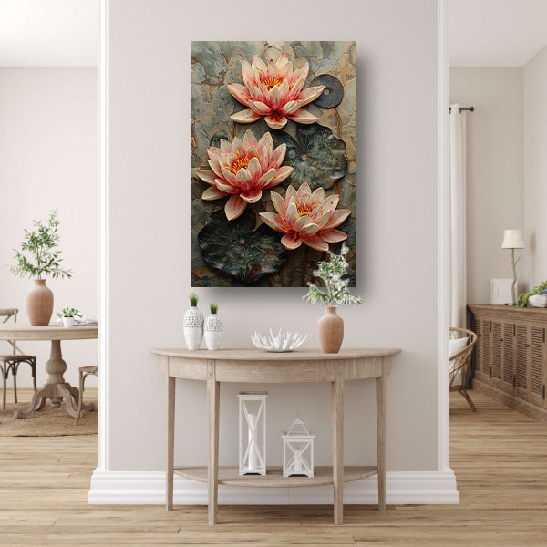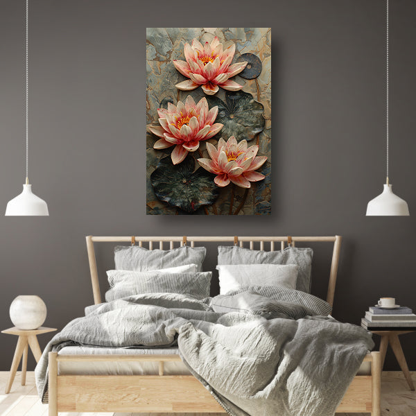 Reliëf van Roze Waterlelies poster