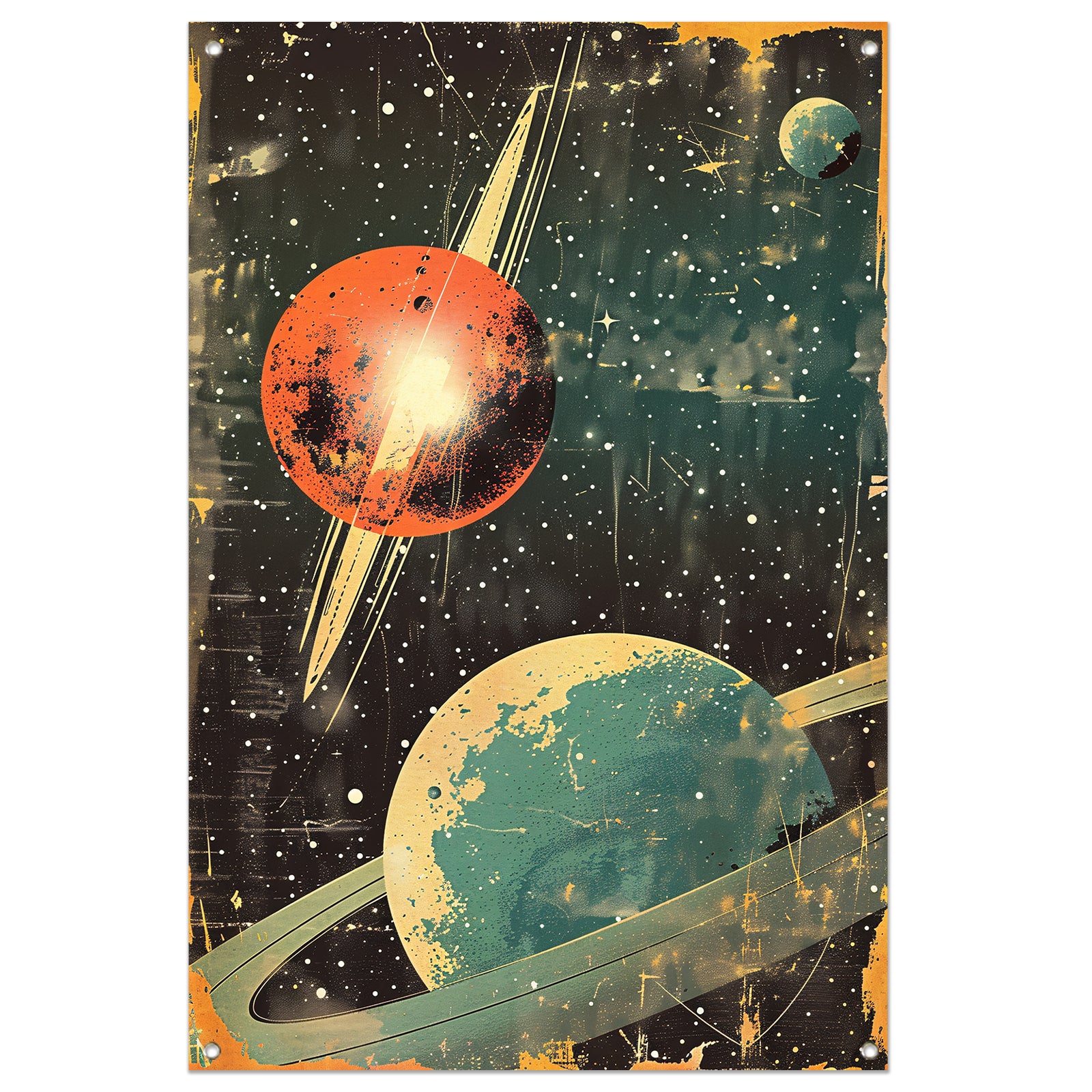Retro-futuristische Planeten in Sterrenhemel tuinposter