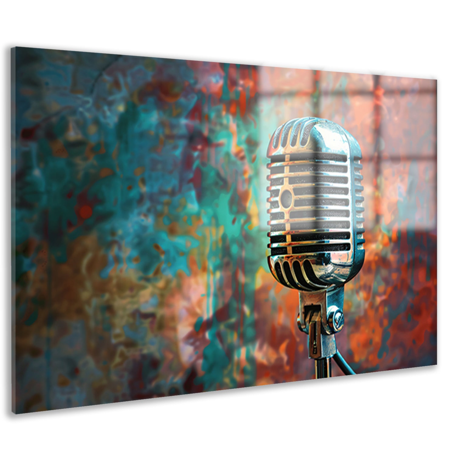 Retro microfoon met abstracte kleurenspatten acrylglas