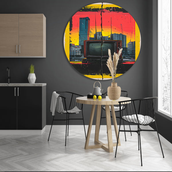 Retro TV en Modern stadsgezicht aluminium muurcirkel
