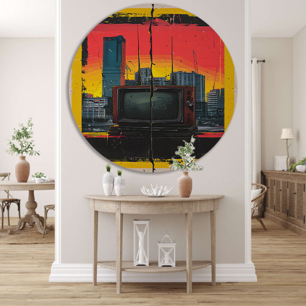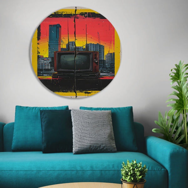 Retro TV en Modern stadsgezicht forex muurcirkel
