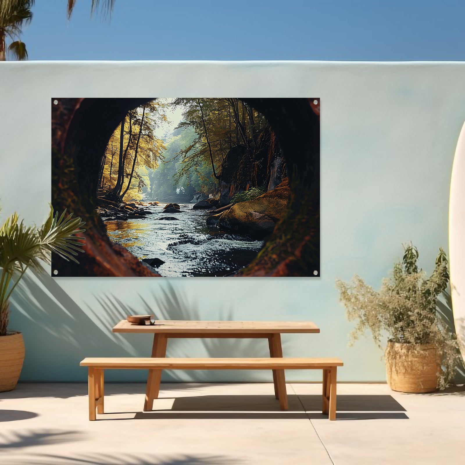 Onze tuinposters zijn UV- en waterbestendig, waardoor ze bestand zijn tegen zon en regen en hun kleuren langdurig mooi blijven. Alle tuinposters van De Muurdecoratie zijn voorzien van ringen in de hoeken, zodat je ze eenvoudig kunt ophangen. Let op: onze tuinposters worden niet met ophangsysteem geleverd.