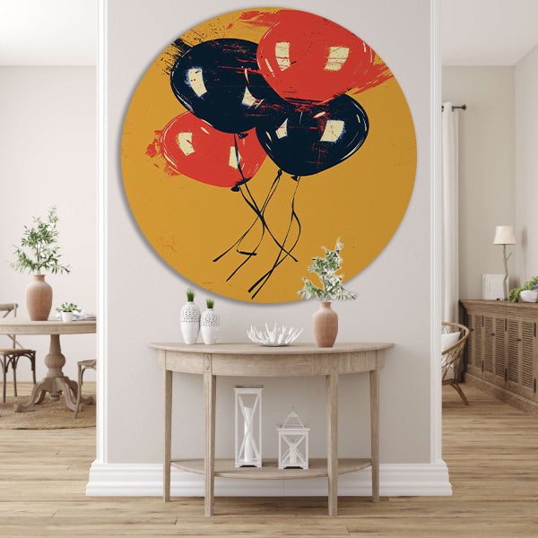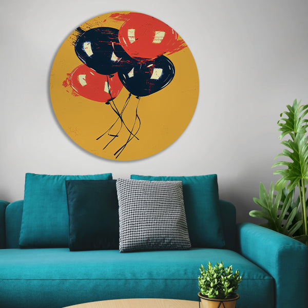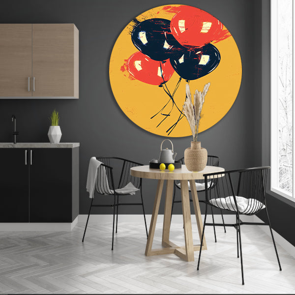 Rode en zwarte ballonnen met verfspatten forex muurcirkel