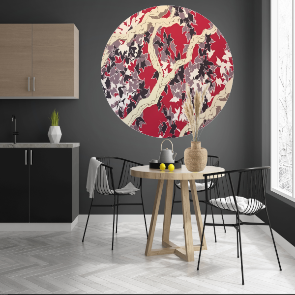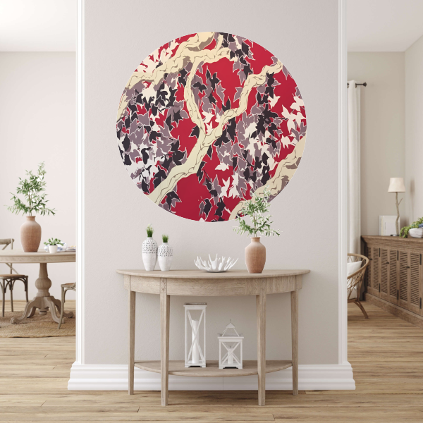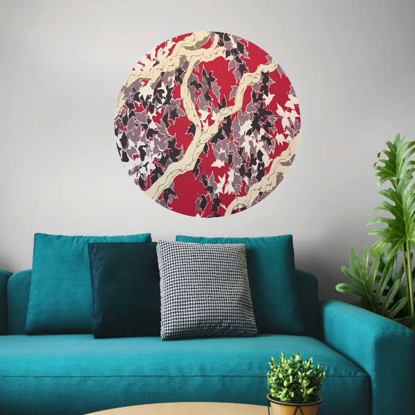Rode Herfst in Abstracte Vorm aluminium muurcirkel