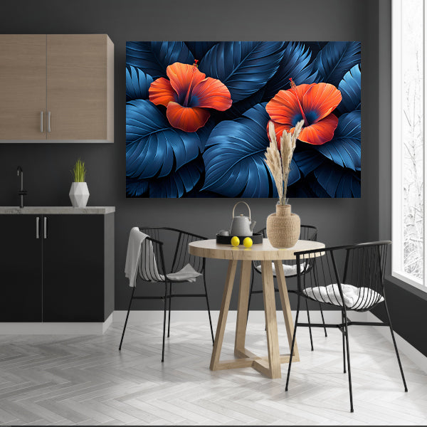 Rode Hibiscusbloemen met Blauwe Bladeren poster