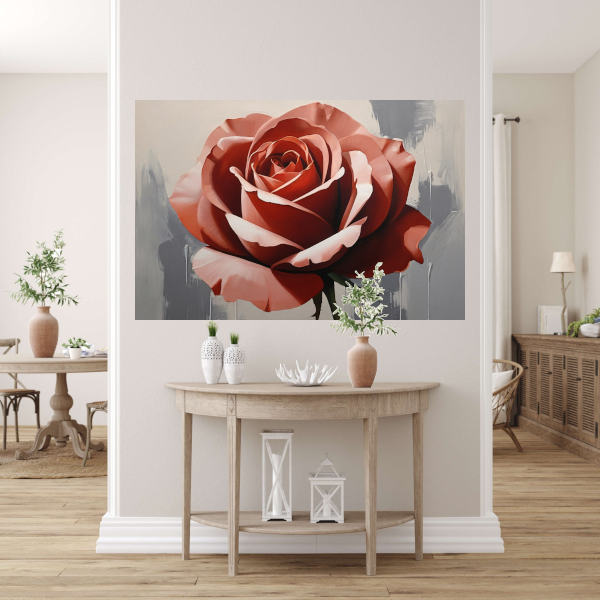 Rode Roos in Close-up op Grijze Achtergrond poster
