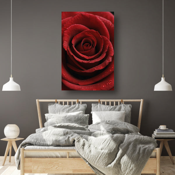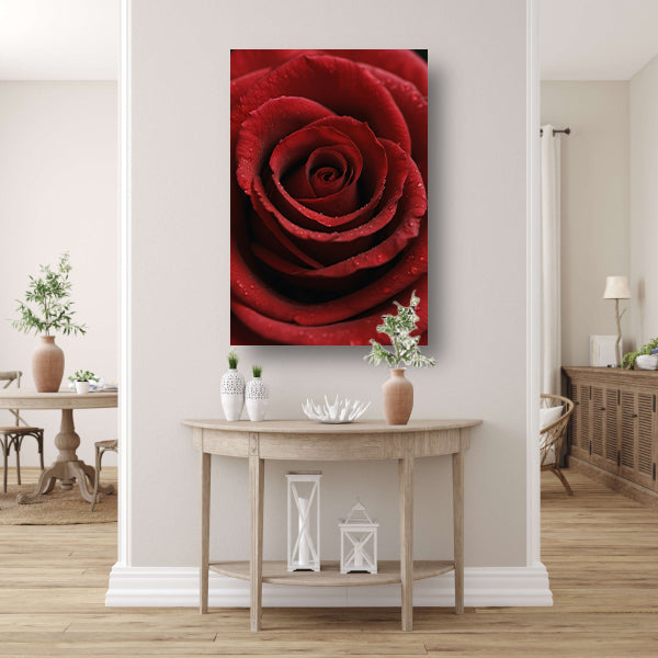 Rode roos met dauwdruppels close-up poster