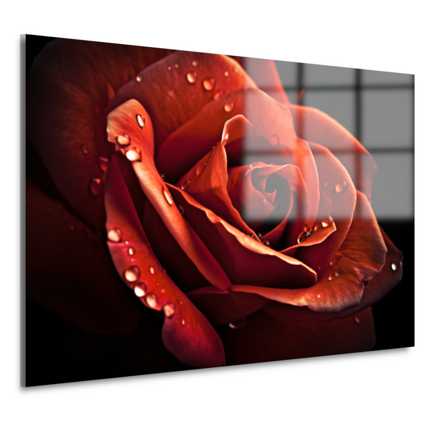 Rode roos met waterdruppels acrylglas