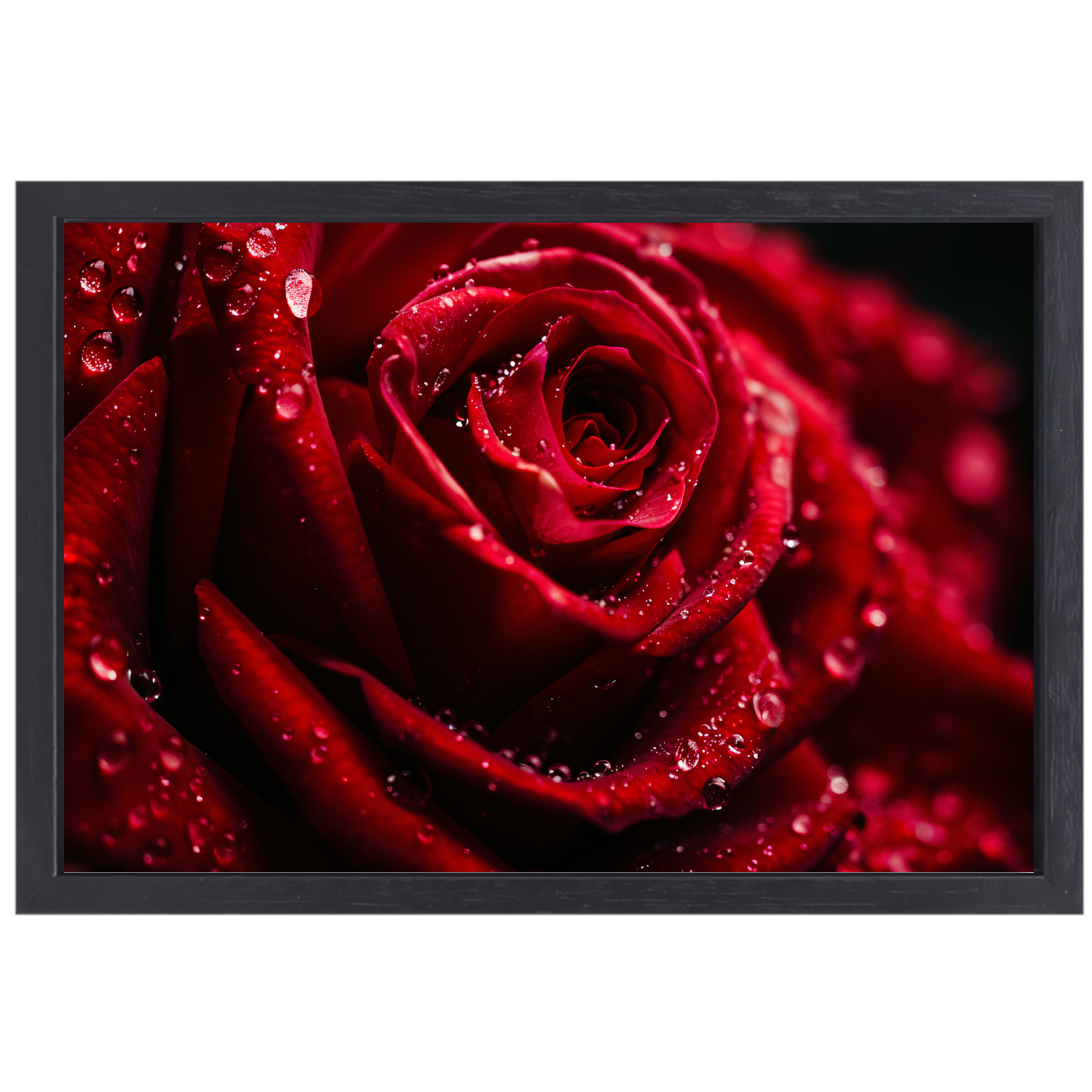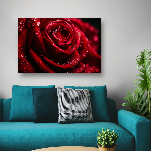 Rode Roos met Waterdruppels in Close-up canvas met baklijst