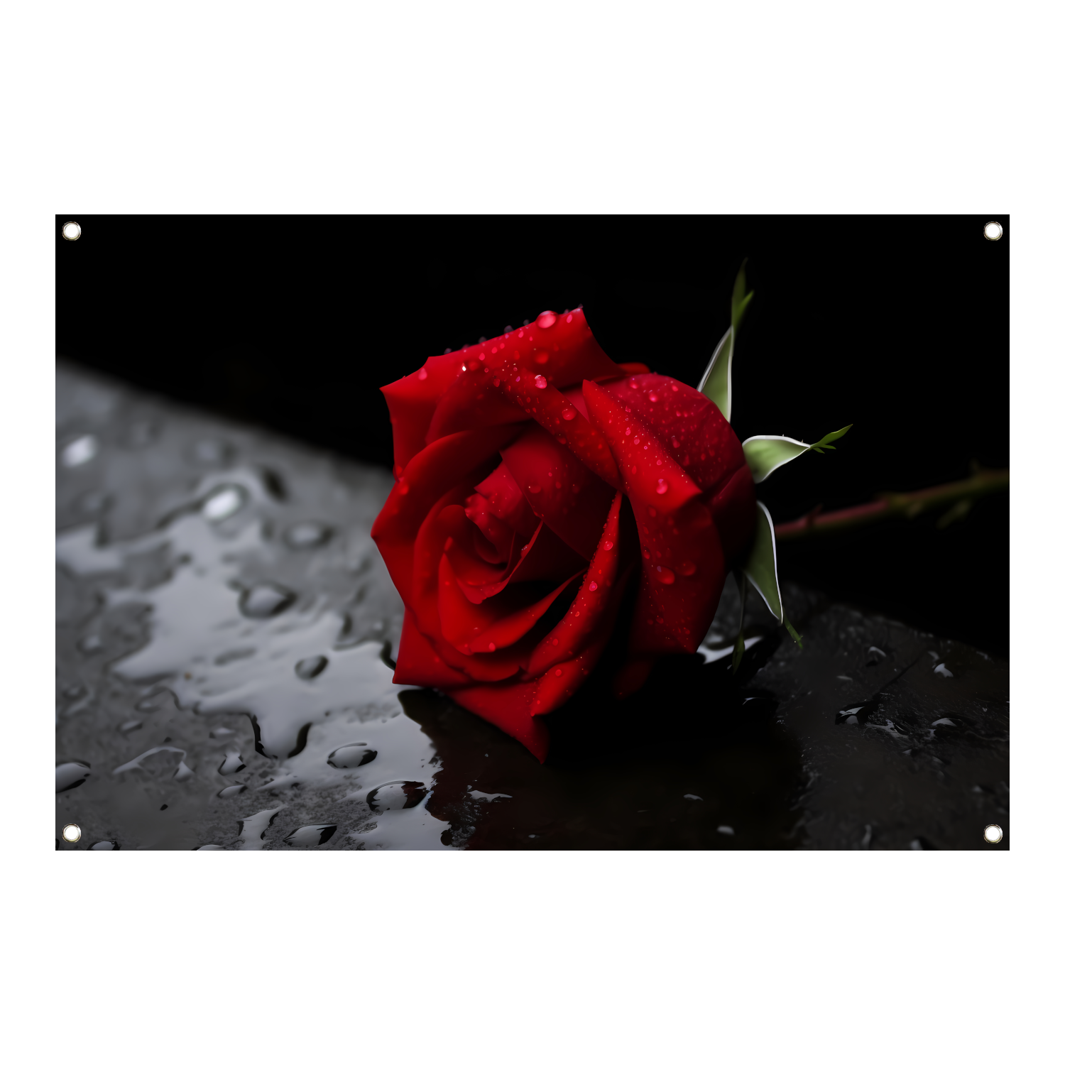 Rode roos met waterdruppels tuinposter