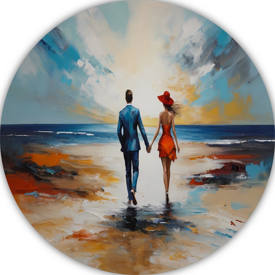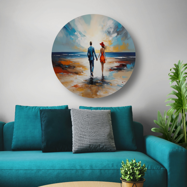 Romantische Strandwandeling met Kleurrijk Paar forex muurcirkel
