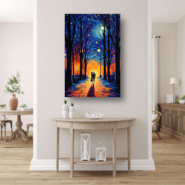 Romantische Wandeling in Schemerig Kleurbos poster