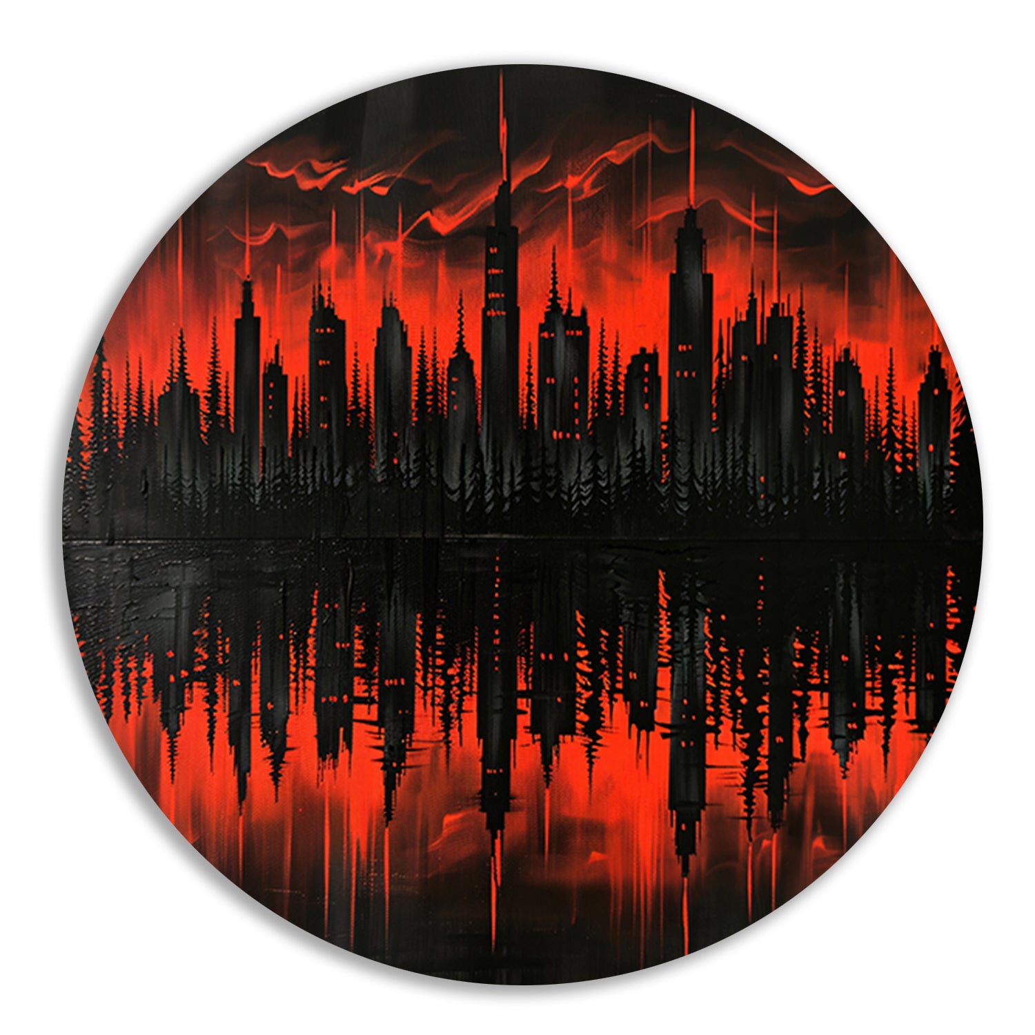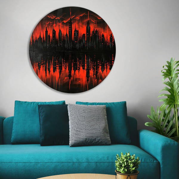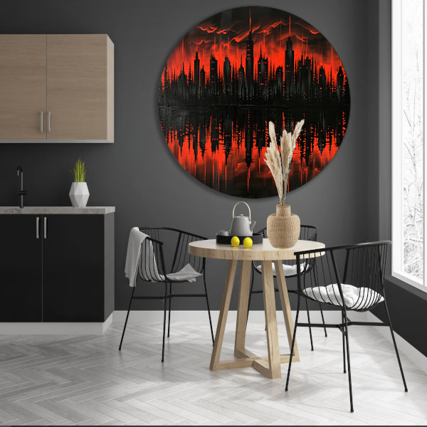 Rood-zwarte stadssilhouet bij zonsondergang forex muurcirkel