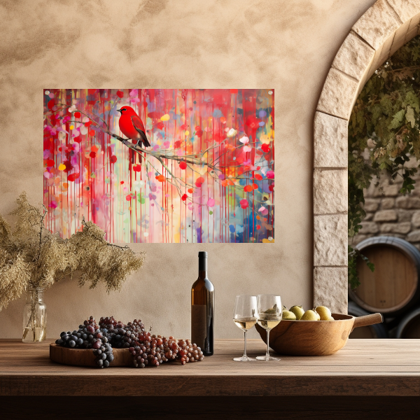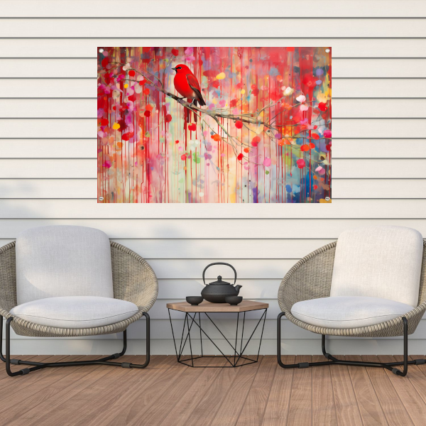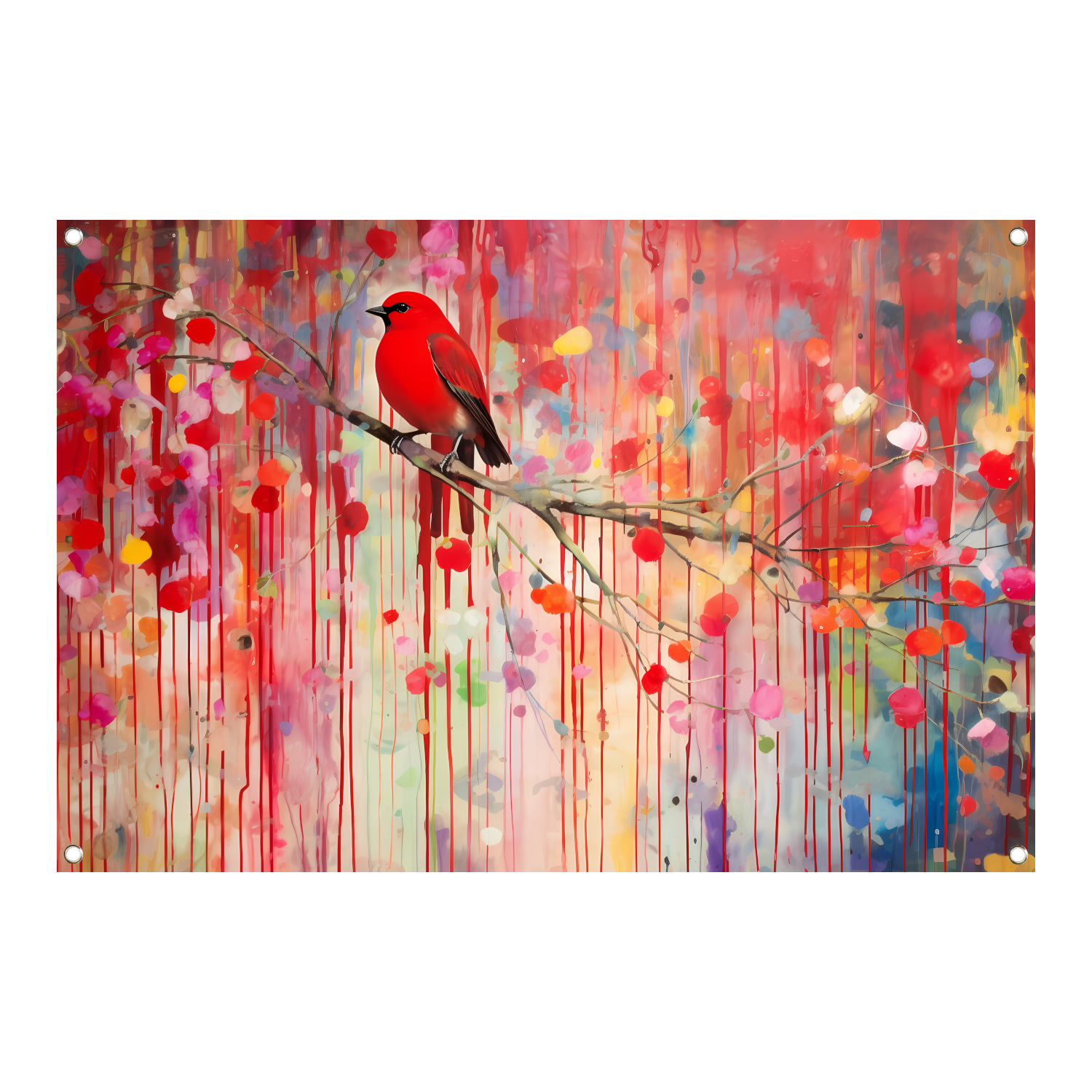 Roodborstje op een tak, Minimalistisch schilderij tuinposter
