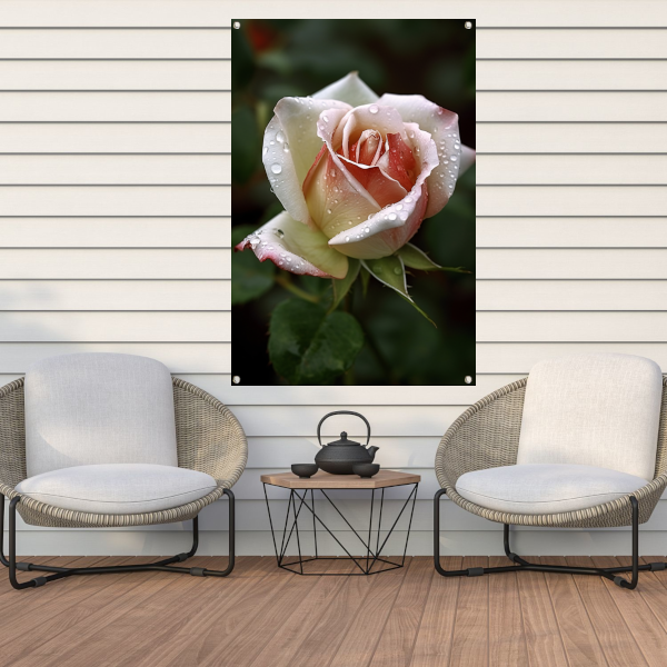 Ontdek de schoonheid van de natuur met onze prachtige tuinposter van een roos met waterdruppels in close-up. Deze staande tuinposter is verkrijgbaar in verschillende formaten en zal een echte eyecatcher zijn in jouw tuin of op jouw balkon.
