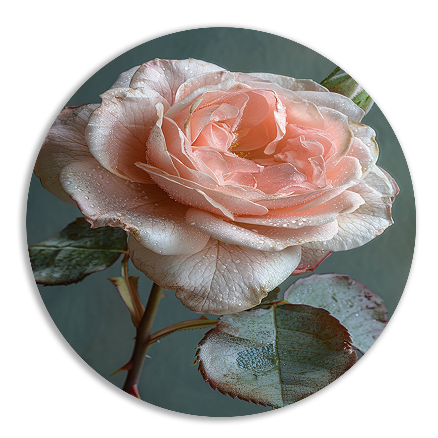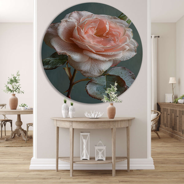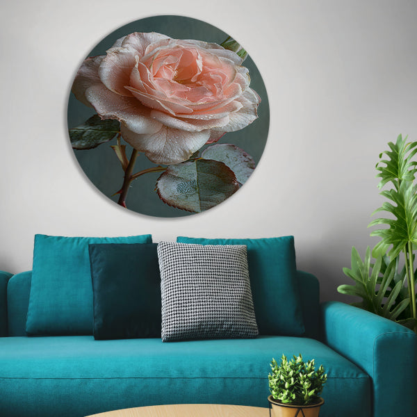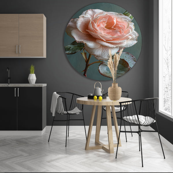 Roze Roos in Bloei met Dauwdruppels aluminium muurcirkel