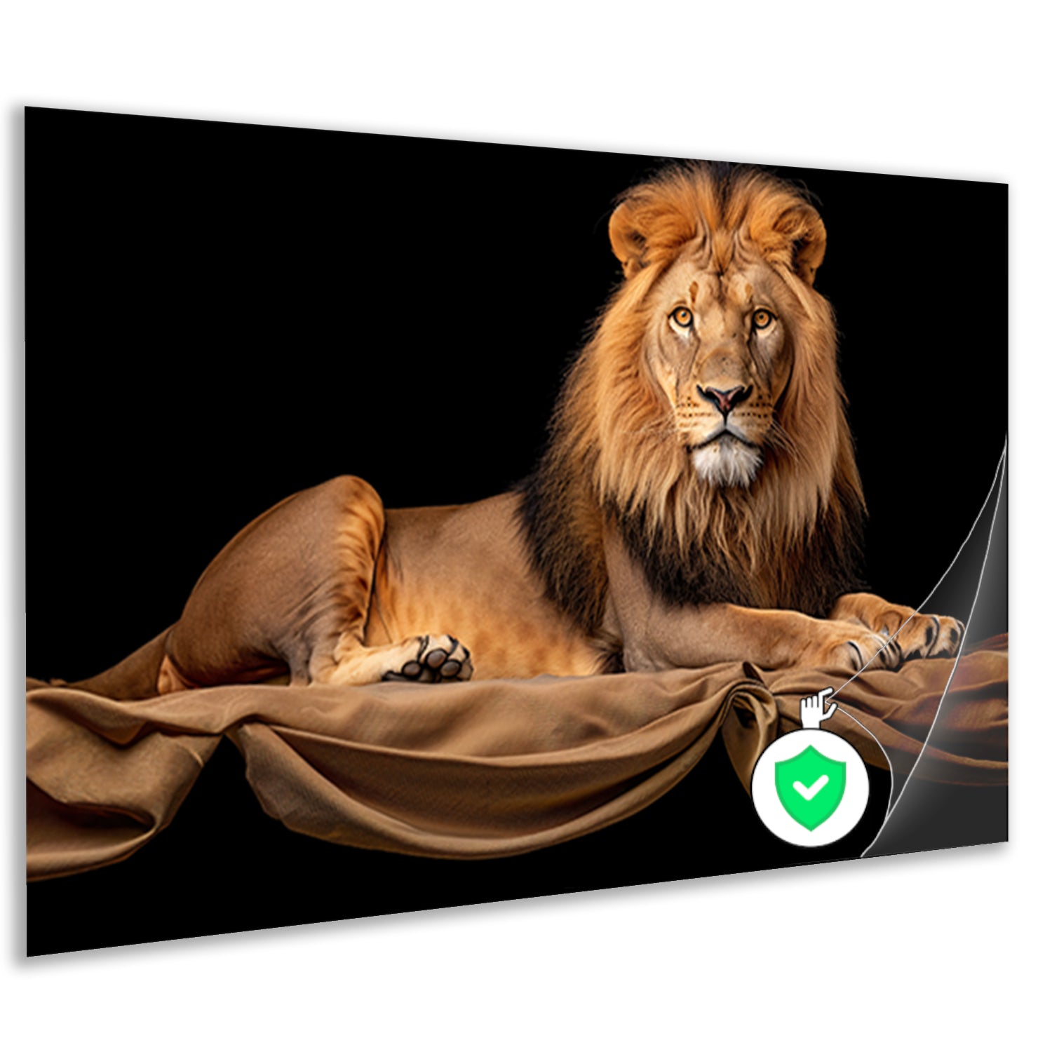 Rustende Leeuw op Stoffen Achtergrond poster