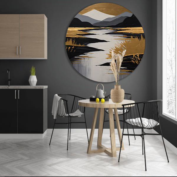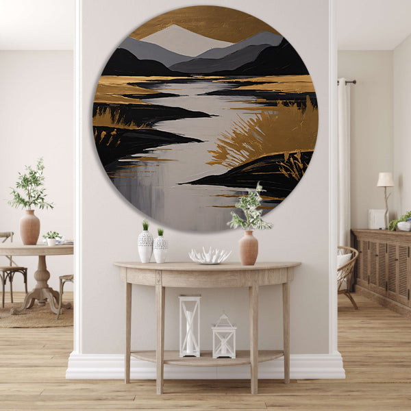 Rustic River Flowing Through Monochrome Mountains aluminium muurcirkel