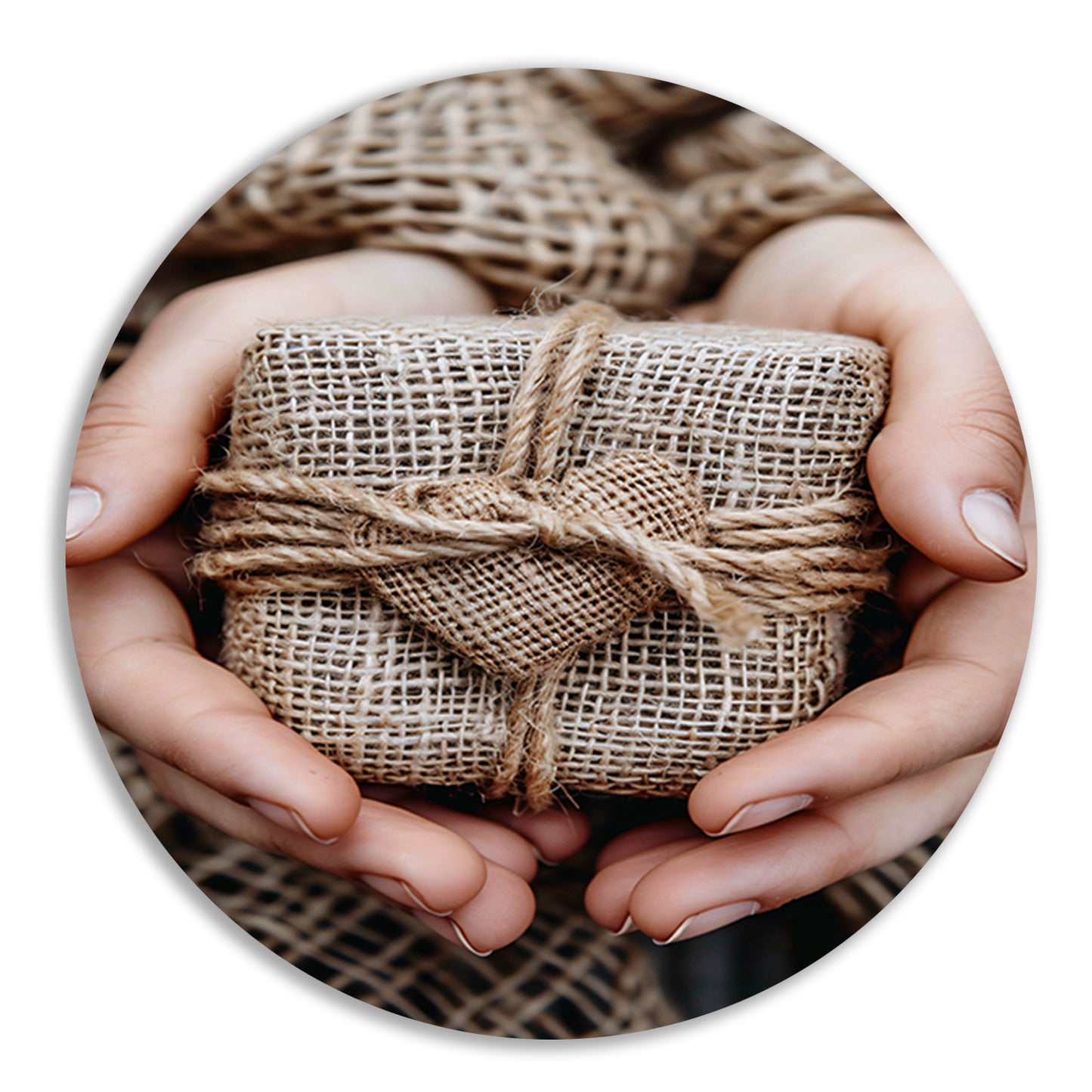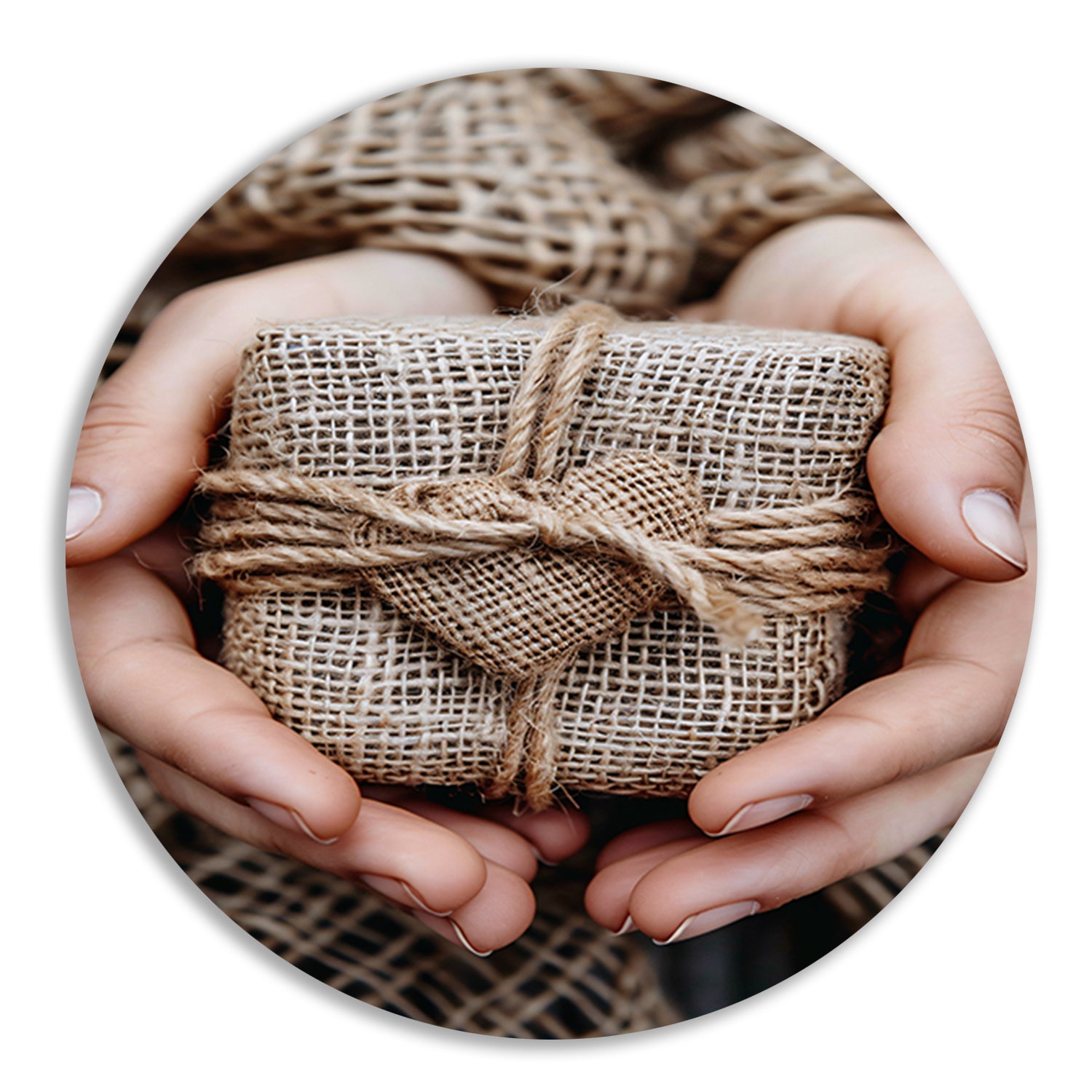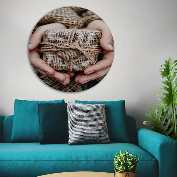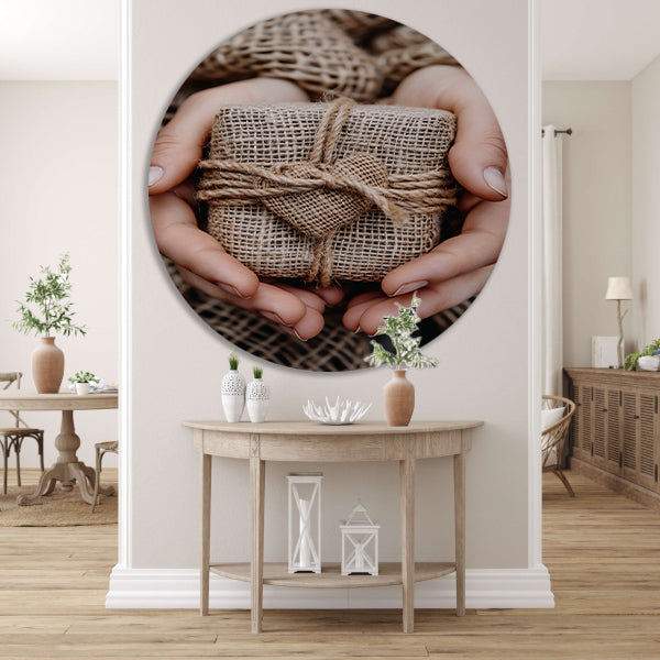 Rustiek ingepakt cadeau met hartaccent aluminium muurcirkel