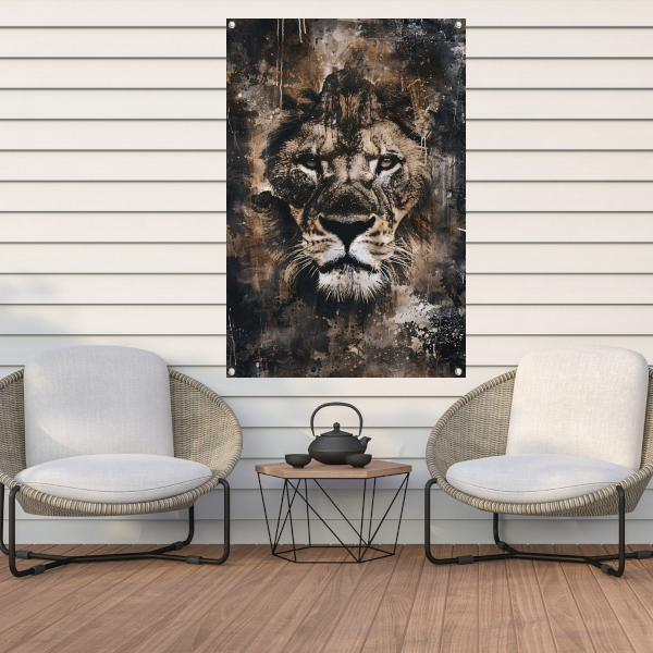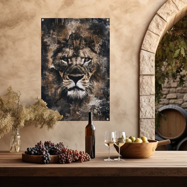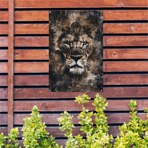 Rustiek leeuwenportret in sepia tinten tuinposter