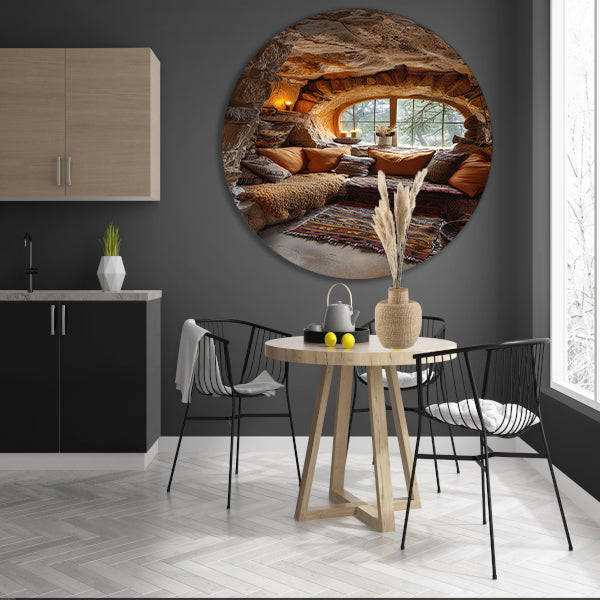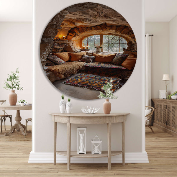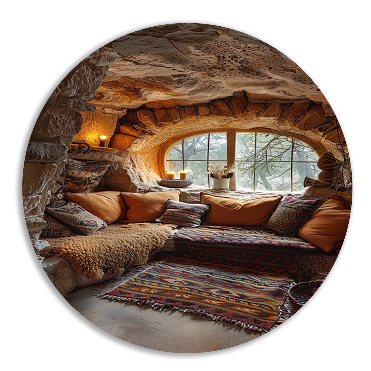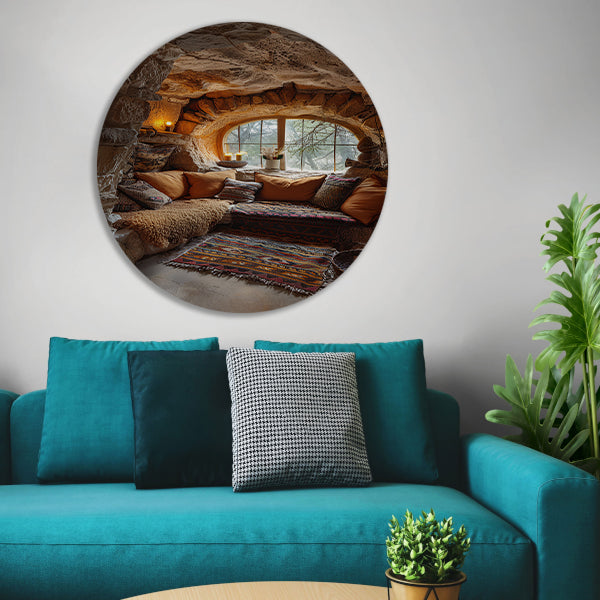 Rustieke en Gezellige Grotwoning met Uitzicht aluminium muurcirkel