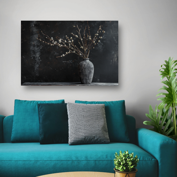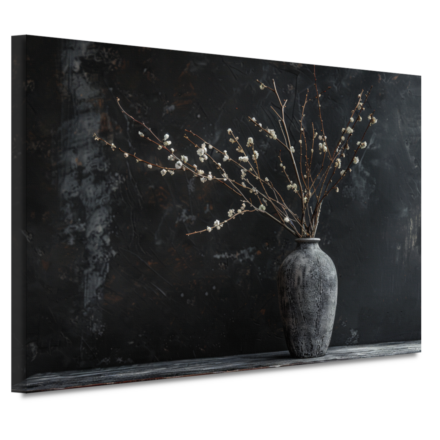 Rustieke Vaas en Takken op Zwarte Achtergrond canvas