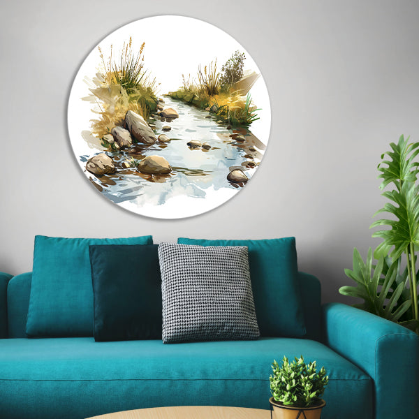 Rustige Kreek in het Landschap aluminium muurcirkel