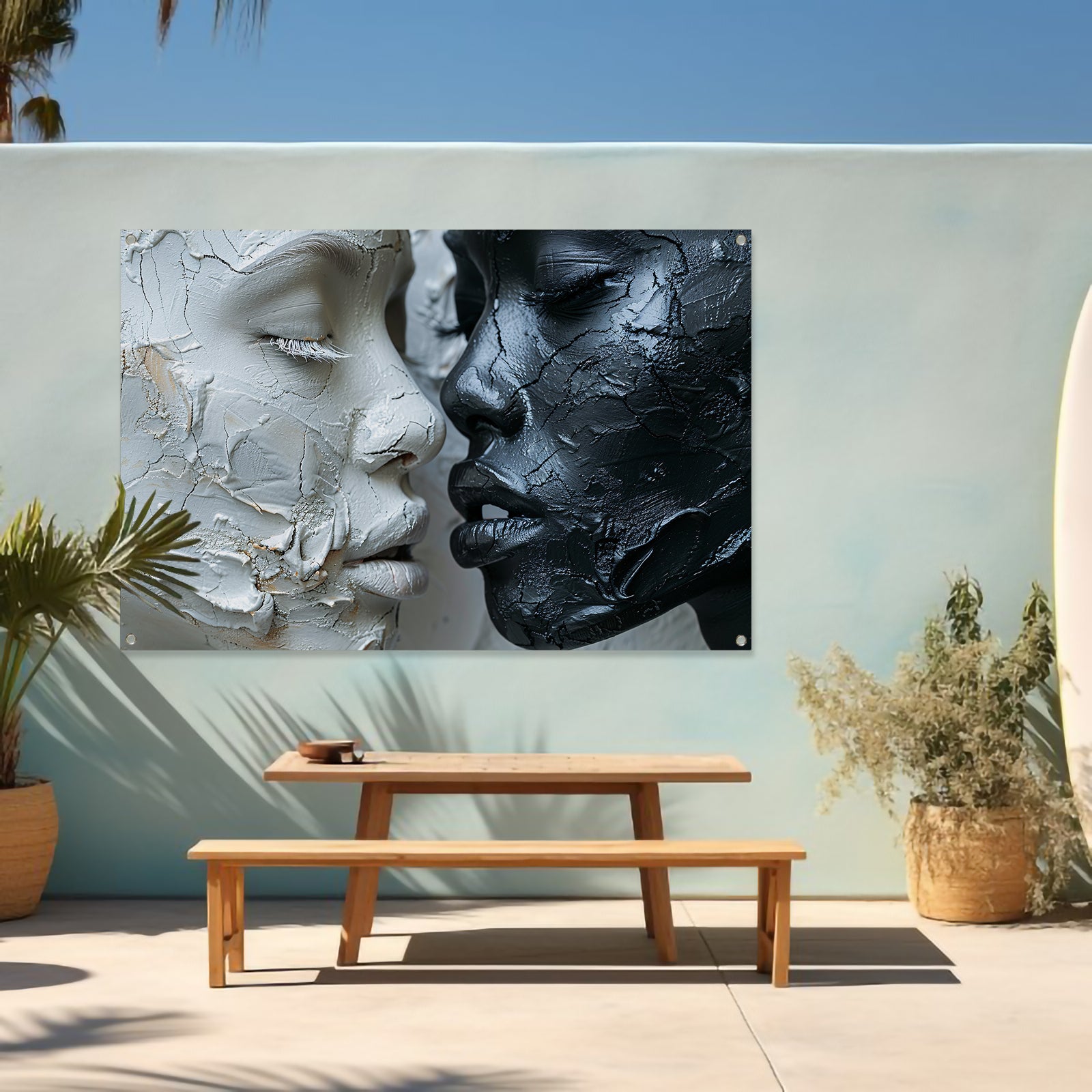 Onze tuinposters zijn UV- en waterbestendig, waardoor ze bestand zijn tegen zon en regen en hun kleuren langdurig mooi blijven. Alle tuinposters van De Muurdecoratie zijn voorzien van ringen in de hoeken, zodat je ze eenvoudig kunt ophangen. Let op: onze tuinposters worden niet met ophangsysteem geleverd.