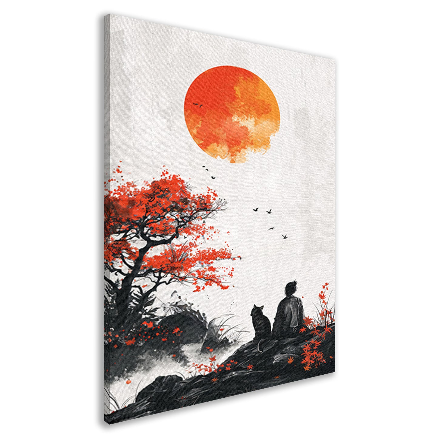 Samoerai en Kat in Herfstlandschap canvas