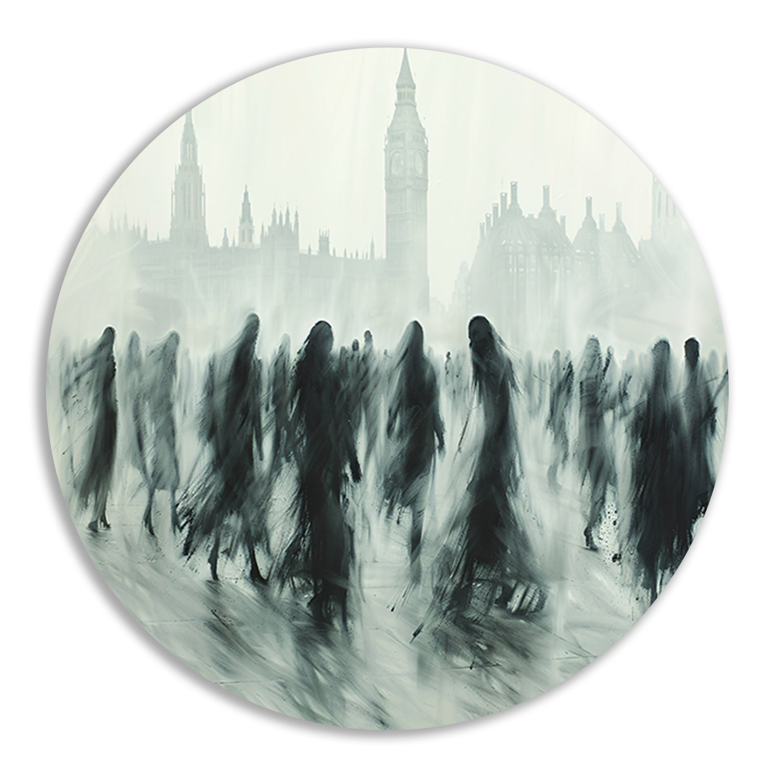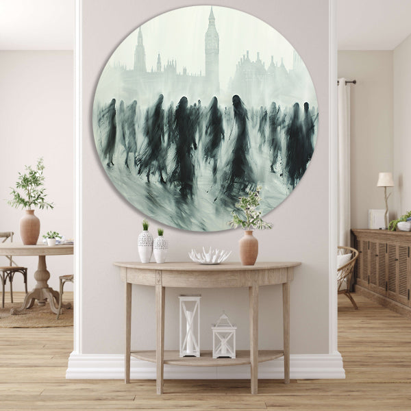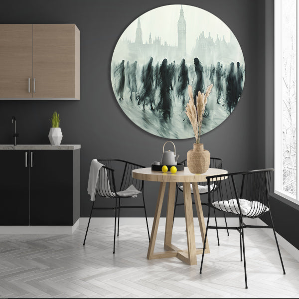 Schaduwfiguren voor een iconische skyline forex muurcirkel