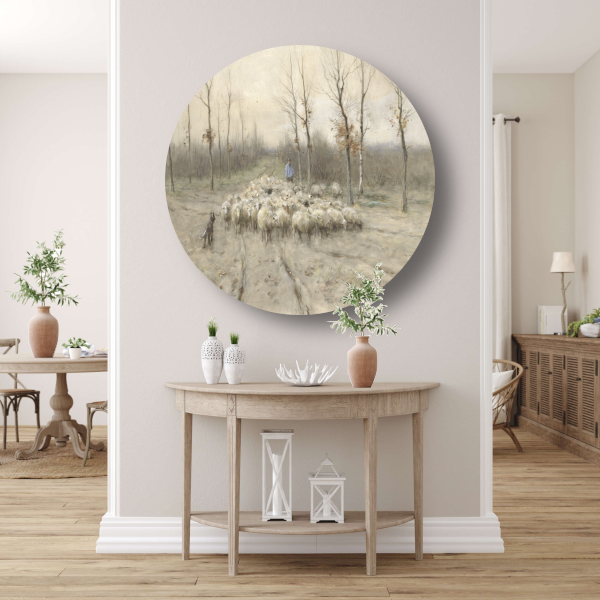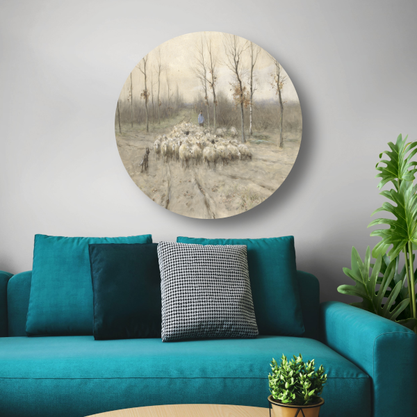 Schapenkudde op de heide bij Laren - Anton Mauve aluminium muurcirkel