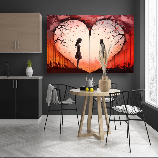 Scheiding door liefde, hartvormige zonsondergang acrylglas