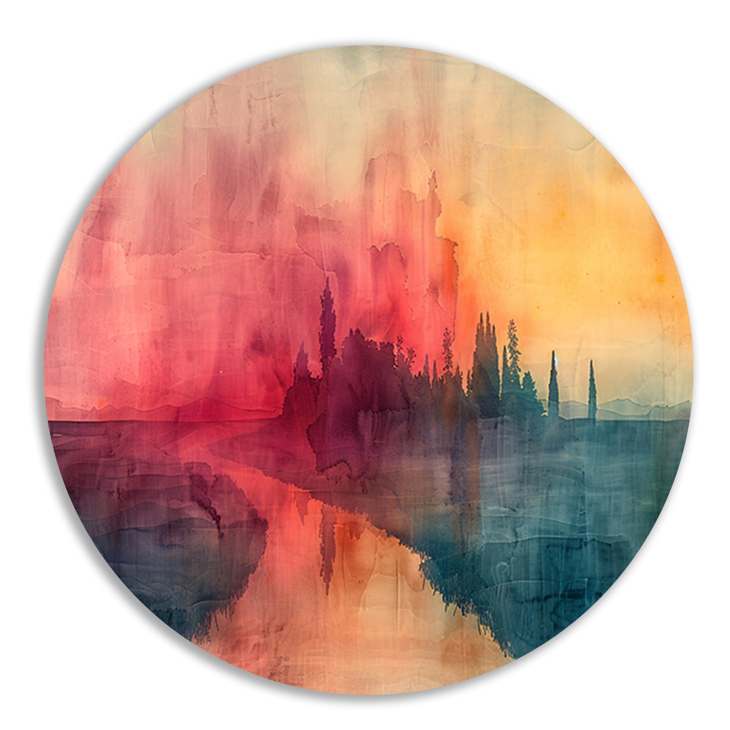 Dit kunstwerk is verkrijgbaar in diverse afmetingen, zodat je altijd een passende maat kunt vinden voor jouw interieur. Voeg een vleugje natuurlijke schoonheid toe aan je huis met de 'Schemerige Reflecties aan een Rustige Rivier' aluminium muurcirkel.