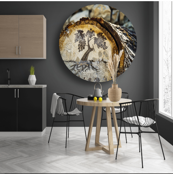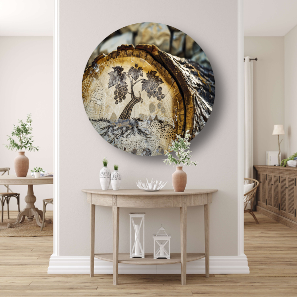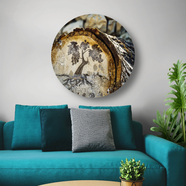 Schets op boomstam: Druivenrank aluminium muurcirkel