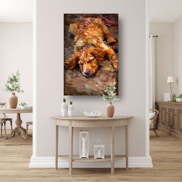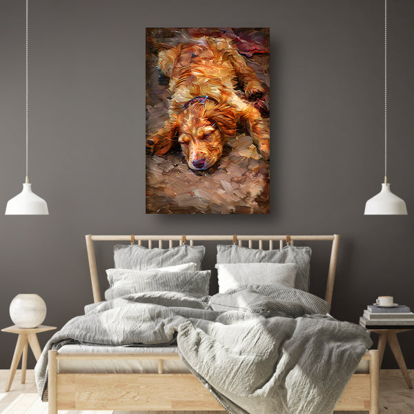 Schilderij van een slapende puppy met bril canvas
