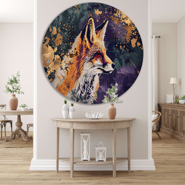 Schilderij van een vos met abstracte details aluminium muurcirkel