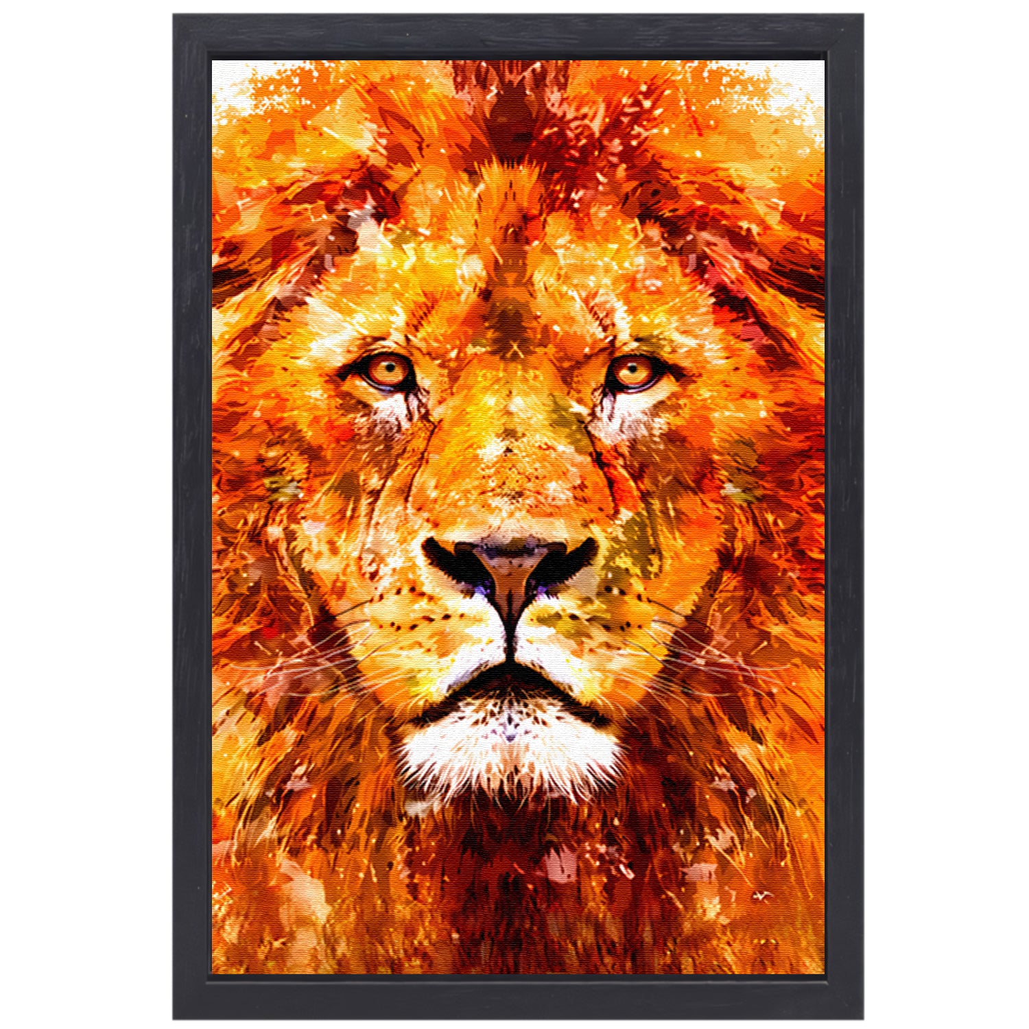 Schilderij van kleurrijke leeuw in close-up canvas met baklijst