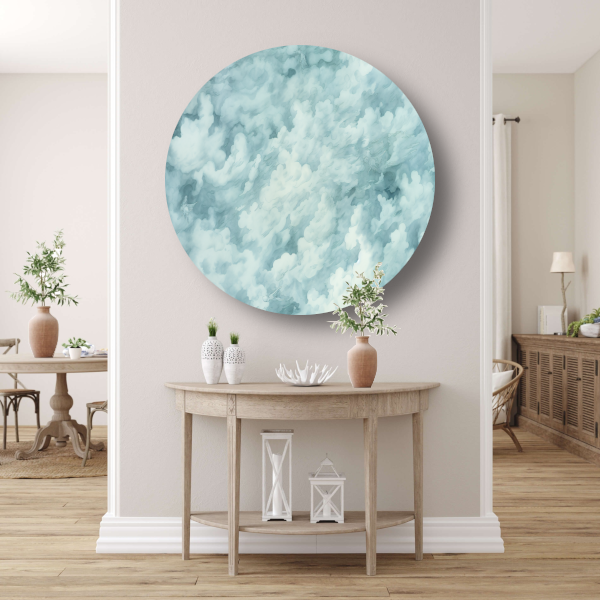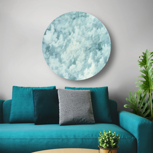 Schilderij van wolken in abstracte stijl aluminium muurcirkel