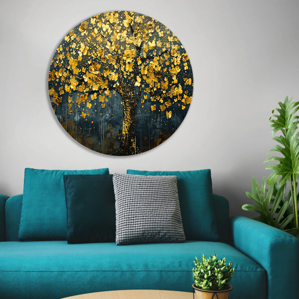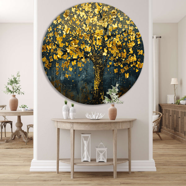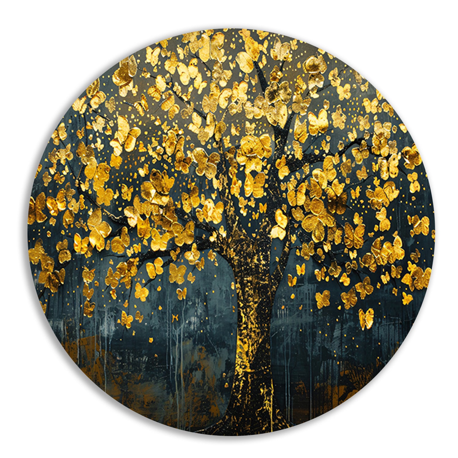 Schitterende gouden boom met bladeren aluminium muurcirkel