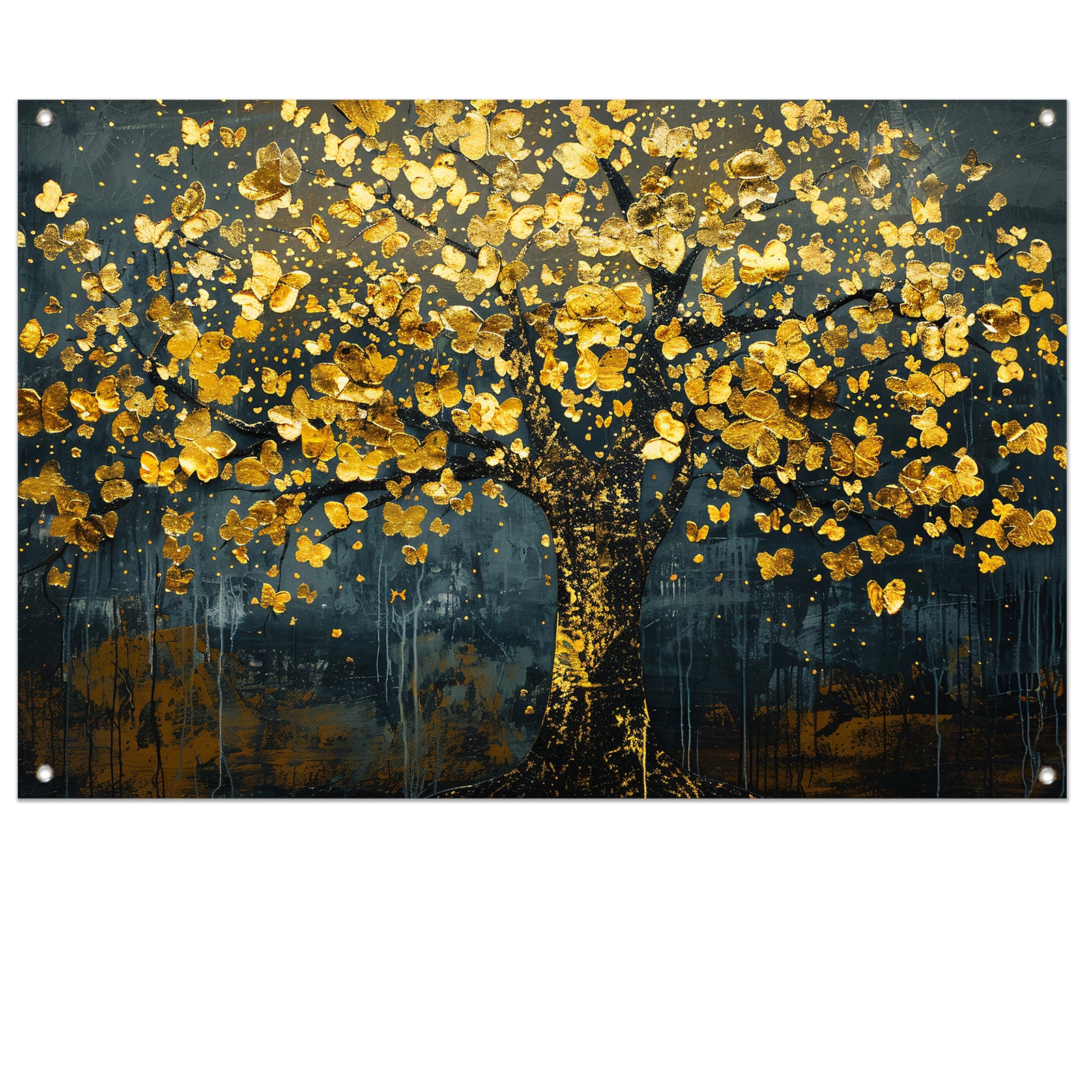Onze tuinposters zijn UV- en waterbestendig, waardoor ze bestand zijn tegen zon en regen en hun kleuren langdurig mooi blijven. Alle tuinposters van De Muurdecoratie zijn voorzien van ringen in de hoeken, zodat je ze eenvoudig kunt ophangen. Let op: onze tuinposters worden niet met ophangsysteem geleverd.