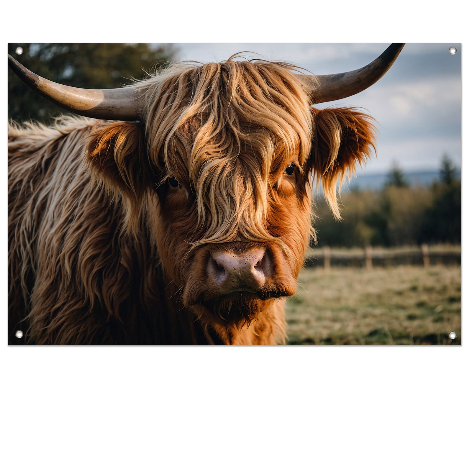 Schotse hooglander in een groen veld tuinposter