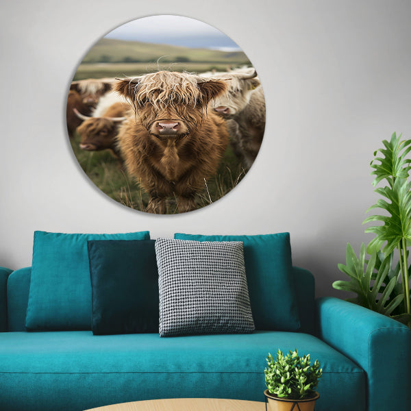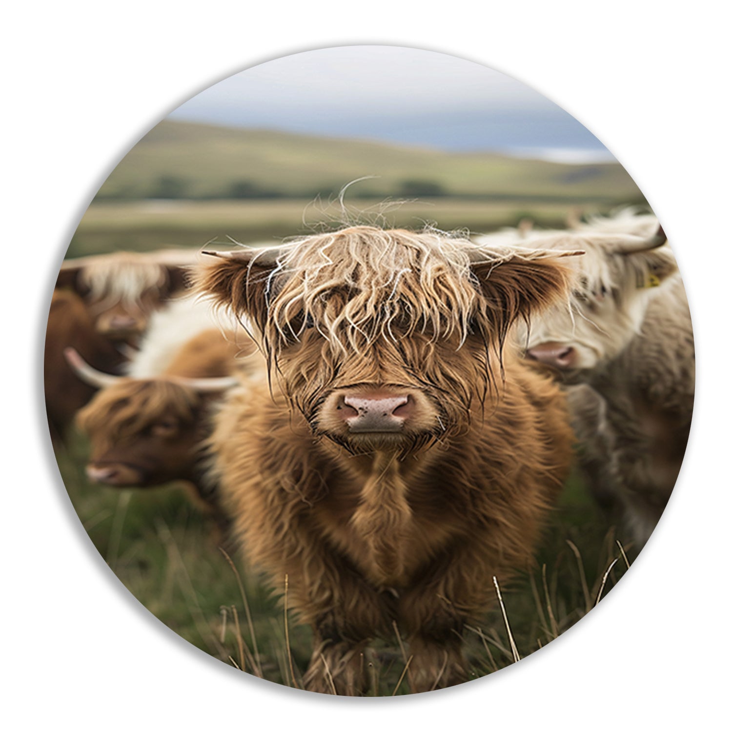 Schotse Hooglander Kalf in Schotse Hooglanden aluminium muurcirkel