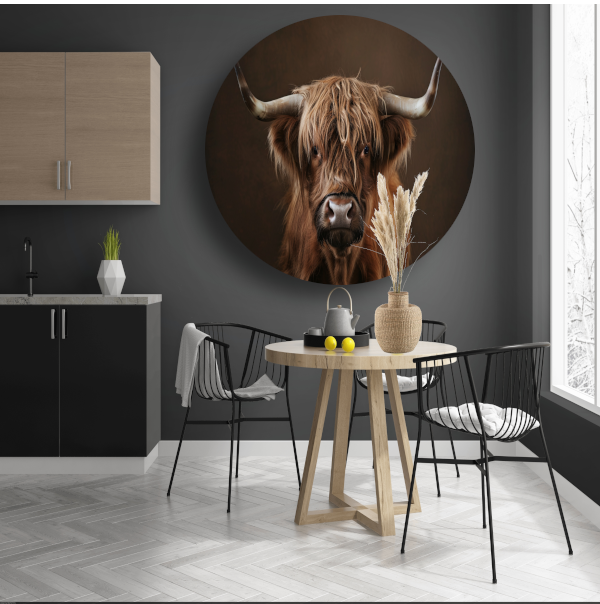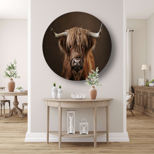 De muurcirkel is verkrijgbaar in allerlei formaten, waardoor je altijd een maat kunt vinden die perfect past bij jouw interieur. Of je nu een kleine ruimte wilt opfleuren of juist een statement wilt maken in een grote kamer, deze muurcirkel is een stijlvolle toevoeging voor iedere ruimte. Haal de natuur in huis met deze Schotse hooglander muurcirkel!
