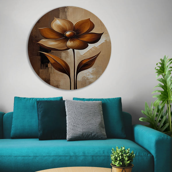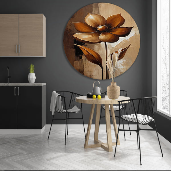 Sepia Abstract Bloem in Stijlvolle Art Deco aluminium muurcirkel