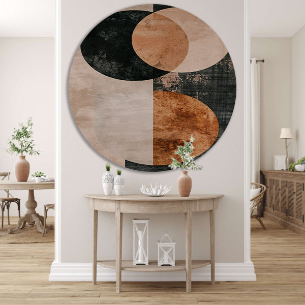 Sepia abstracte cirkels en lijnenspel aluminium muurcirkel